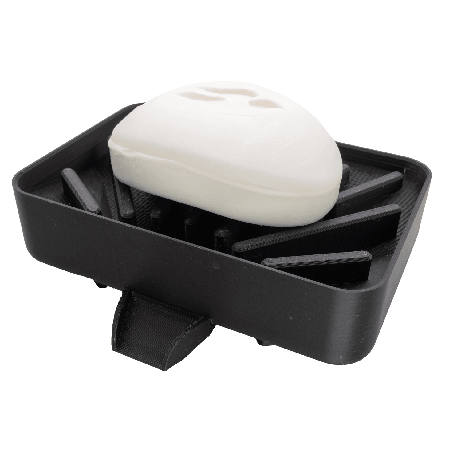 Designed to be sleek and functional, this soap or sponge holder conveniently sends water down the drain for you.